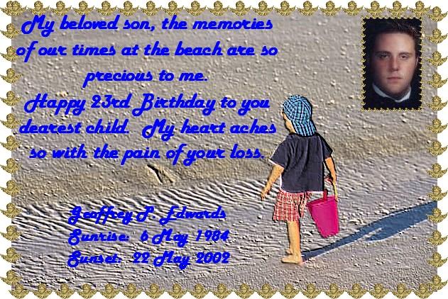 Happy Birthday, beloved son. I just wish you were here with us to celebrate.